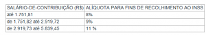 E para o ANEXO II que trata sobre a TABELA DE CONTRIBUIÇÃO DOS SEGURADOS EMPREGADO, EMPREGADO DOMÉSTICO E TRABALHADOR AVULSO, PARA PAGAMENTO DE REMUNERAÇÃO A PARTIR DE 1º DE JANEIRO DE 2019