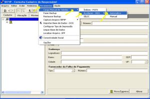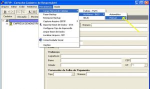 Caso o SEFIP não aceite a carga por haver um movimento financeiro aberto e se você utiliza apenas o módulo de importação da FOLHA, execute em FERRAMENTAS a opção LIMPAR BASE DE DADOS e em seguida, entre novamente na opção Carga de Tabelas.
