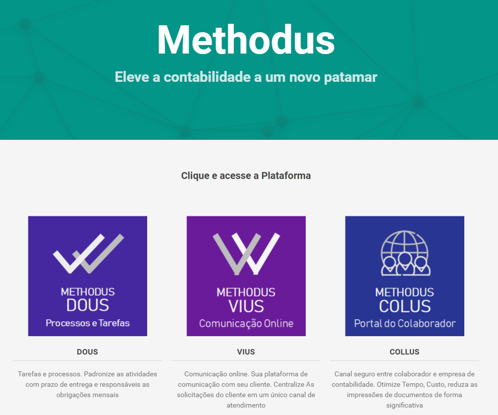 O Methodus é uma plataforma na nuvem para gestão de tarefas e processos, comunicação online com o cliente e canal seguro entre colaborador e empresa de contabilidade para otimizar tempo, custo e reduzir impressões de documentos.