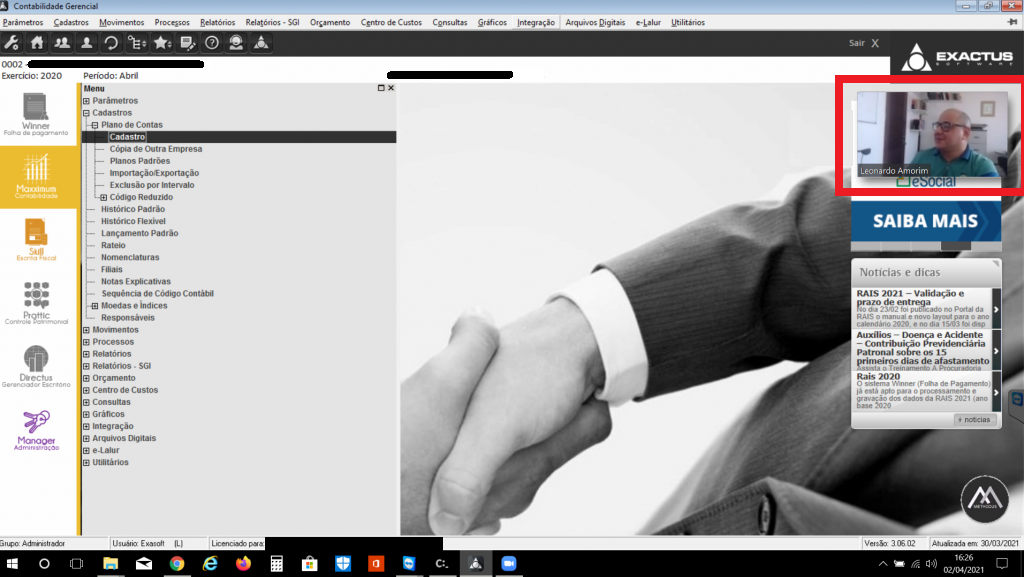 Aviso Legal: Evento exclusivo para clientes Exactus com contrato e suporte pela LLConsulte. Os códigos de acesso para a reunião serão enviados por WhatsApp.